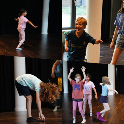 Wir improvisieren und sammeln in Spielen und Übungen neue Ideen. So lassen wir uns auch von der Tierwelt, der Natur, verschiedenen Sportarten und unserer eigenen Gefühlswelt leiten.