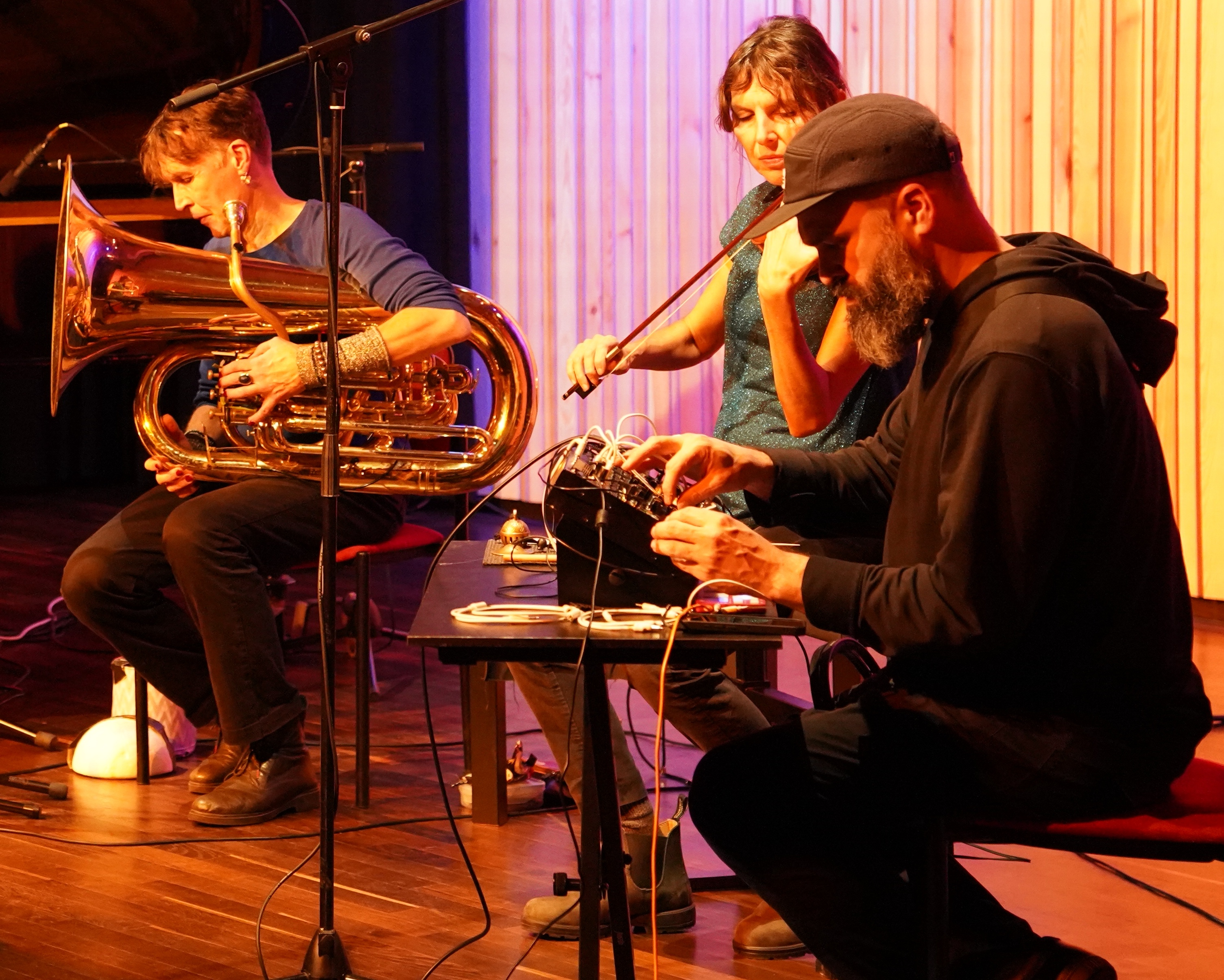 Fred Frith (GB/US): Gitarre | Lotte Anker (DK): Saxofon | Núria Andorrà (ES): Perkussion